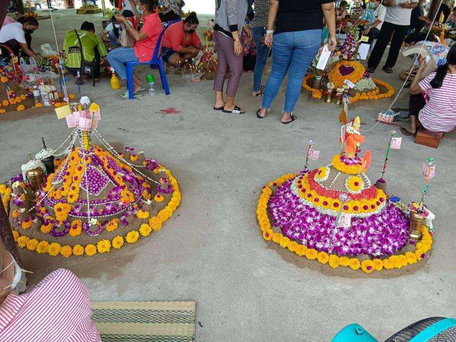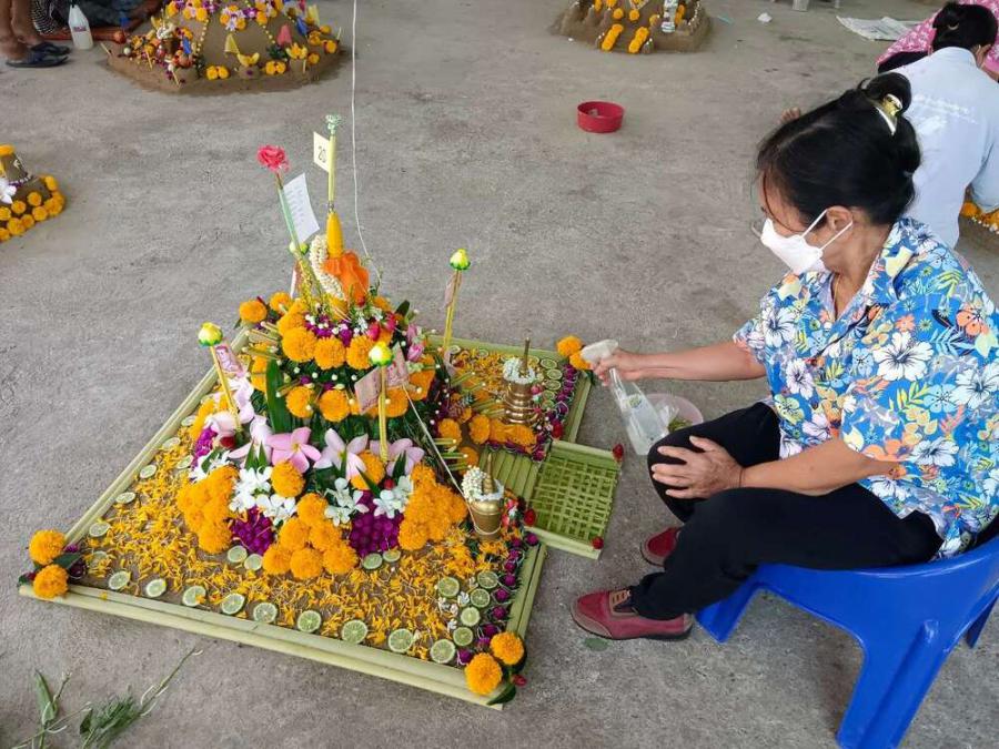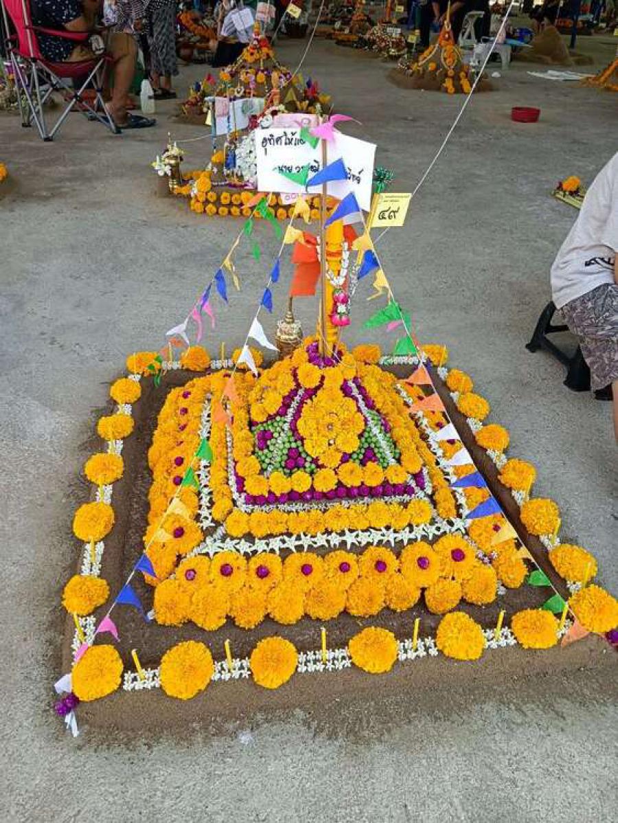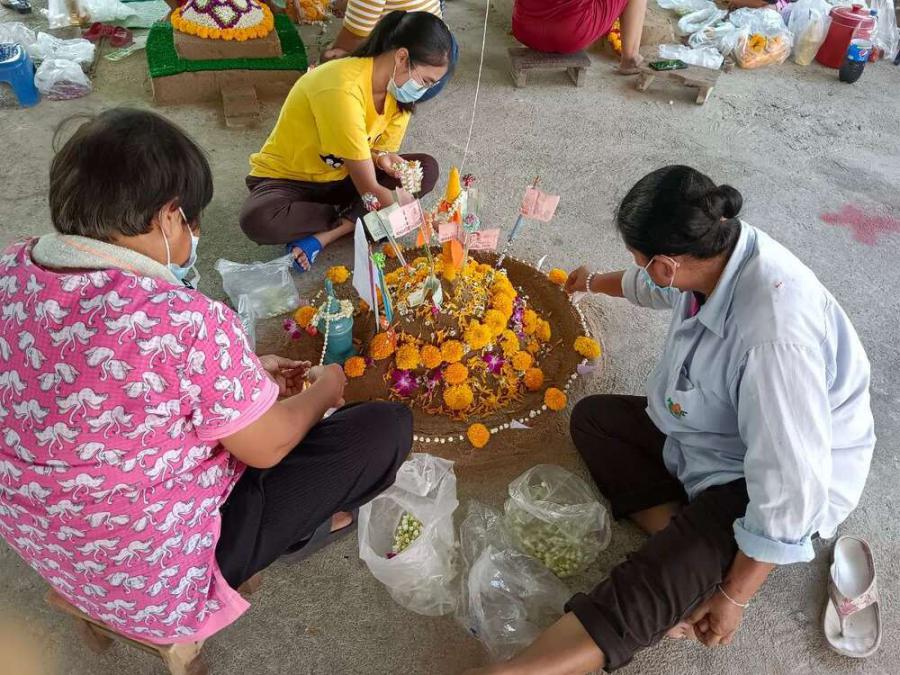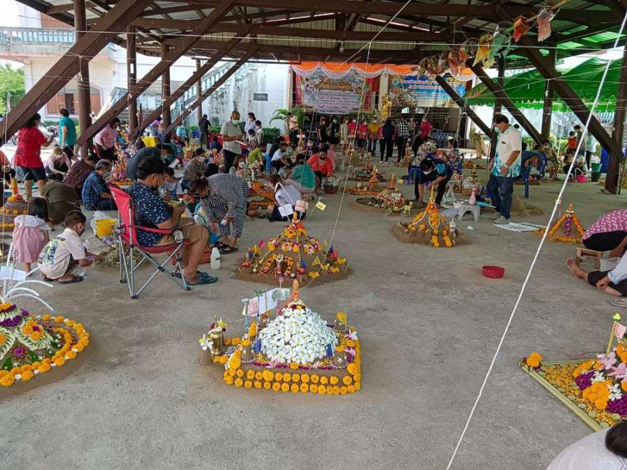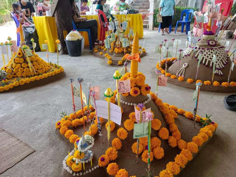 บรรยากาศการก่อเจดีย์ทรายกลบธาตุ สัญลักษณ์แห่งการรำลึกถึงความผูกพันต่อบรรพบุรุษผู้ล่วงลับ วันที่ 31 มีนาคม 2565 ที่วัดช้างเผือก และ วัดทุ่งสะเดียง อำเภอเมืองเพชรบูรณ์ จังหวัดเพชรบูรณ์